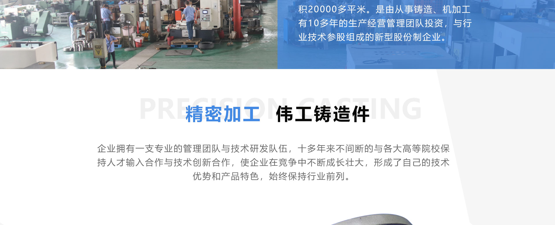 安徽偉工機(jī)械科技有限公司,坐落于安徽蕪湖新蕪經(jīng)濟(jì)開發(fā)區(qū),是一家専業(yè)從事鑄造產(chǎn)品設(shè)計(jì)、研發(fā)、生產(chǎn)、銷售于一體的企業(yè),公司為客戶的產(chǎn)品提供多樣的技術(shù)支持與設(shè)計(jì),公司主要鑄造技術(shù)有潮模砂鑄造、硅溶膠精鑄工藝。主要產(chǎn)品有:不銹鋼閥門配件、泵閥配件、汽車配件、工業(yè)管道配件、工程機(jī)械配件、汽車配件等。材質(zhì)為:低合金鋼、304、316、316L、鉻鉬鋼、哈氏合金、碳鋼、雙相鋼等。公司已先后通過ISO9001和TS16949等多種體系審核,以完備的管理手段和齊全的檢測設(shè)備滿足客戶需求,進(jìn)的設(shè)備,専業(yè)的技術(shù),嚴(yán)謹(jǐn)?shù)墓芾?,穩(wěn)定的質(zhì)量。服務(wù)客戶,鑄造未來,偉工誠摯的歡迎新老客戶共同商洽合作
